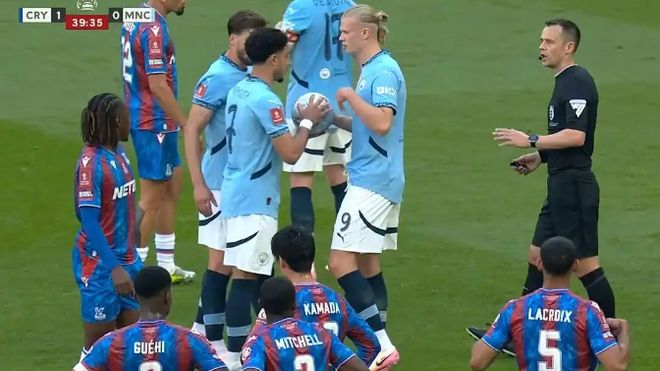 在上賽季的足總杯決賽里,貝爾納多-席爾瓦為曼城贏得點球。然而,作為球隊的頭號點球手、頭號射手,哈蘭德卻并未主罰點球,而是讓給了馬爾穆什,但后者主罰的點球被亨德森撲出,導致曼城最終告負,水晶宮隊史首次贏得足總杯。水晶宮球迷則高唱,“你在溫布利的何處?”